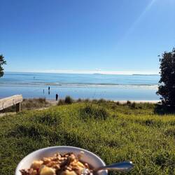 Nach einer sehr ruhigen und langen Nacht, fahren wir nur forma Minuten zum Matarangi Beach um dort gemütlich zu frühstücken und zu spazieren, denn wir lassen es die letzen Tage langsam