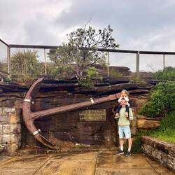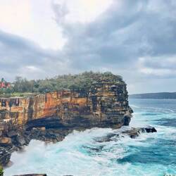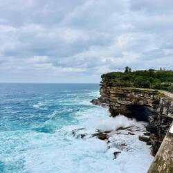 Guten Morgen, heute ist das Wetter etwas schlechter. Regen in der Früh, wir wollen zur Watson Bay aber nachdem wir aus dem Bus gestiegen sind nieselt es wieder, dann erstmal Kaffee/Tee/Milch-Stopp. Danach ist es akzeptabel nur windig und wir gehen an The Gap. Hier lief die Dunbar 1857 auf Grund 121 Tote, danach wurde dann ein Leuchtturm gebaut..