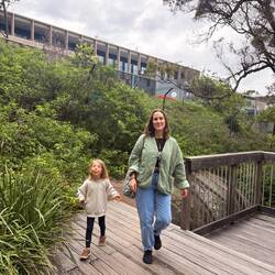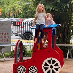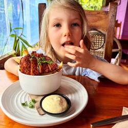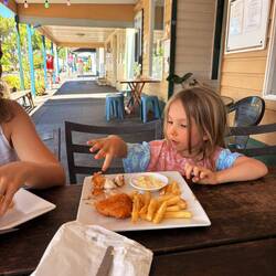 Wir verbringen den Tag im Ort, kaufen ein paar coole Klamotten ein, gehen auf Spielplätze (Emilia traut sich was und klettert bis fast ganz oben, schätze so 6-7m), essen Fish & Chips, ja auch ich!
