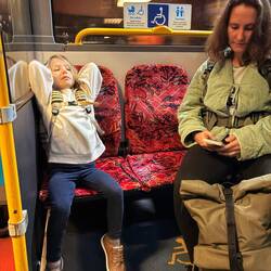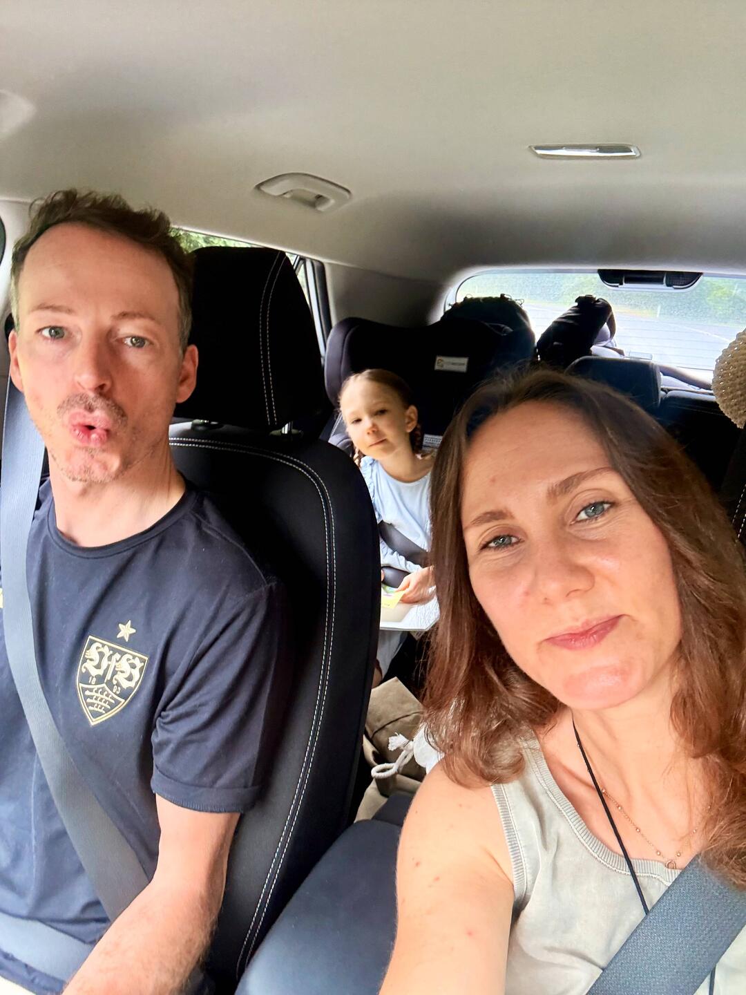Dann weiter, Emilia schläft nach dem Freibad Besuch und wir machen Strecke…