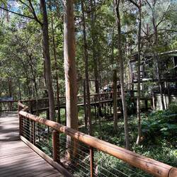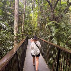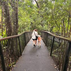 Es gibt hier auch eine Scenic Railway (Zug) und auch eine Seilban die man sich teuer kaufen kann um den Regenwald zu erleben. Wir fahren Auto und laufen.