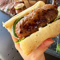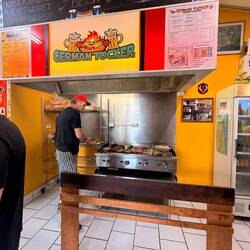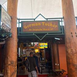 Anschließend sind wir im kleinen Dorf Kuranda unterwegs und finden den German Tucker. Von wegen Deutsch, er ist Holländer, sein Freund ist deutsch. Egal gibt ne Käsekrainer mit Kraut für E&M und ein Bier für T.