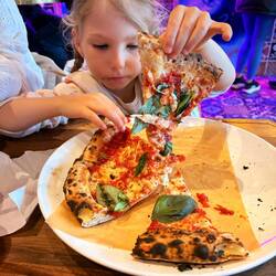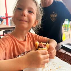 Gegen 17:20 Uhr sind wir im Apartment angekommen und holen nach dem Ausladen och kurz eine Pizza für ein schnelles Abendessen.