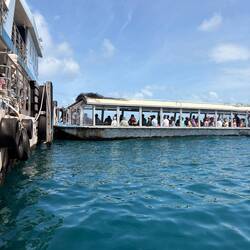Um 7:45 geht’s los, es wurde 7:55… und der Berufsverkehr hatt die Fahrzeit von 30 Min auf 45 verlängert. Sollte eigentlich noch reichen. Boarding bis 8:50, allerdings noch parken und zum Steg laufen.