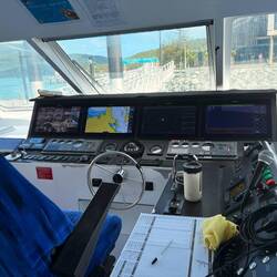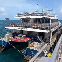 Es klappt, wir legen ab mit dem großen Catamaran Magic Reef 3 zur 90