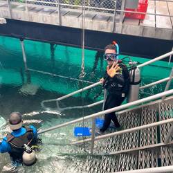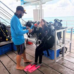 Dann geht’s auch schon los. Miri und ich sind die zwei einzigen certified Diver und haben jeder exklusiv 2 Guides unter Wasser dabei, da sollte nichts schiefgehen. Trotzdem haben wir Respekt, der letze Tauchgang war 2019 in Thailand.