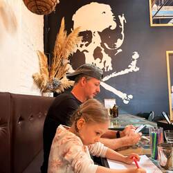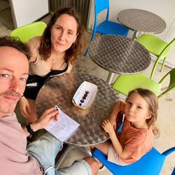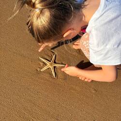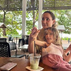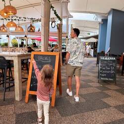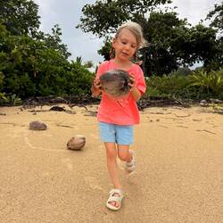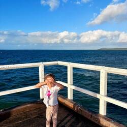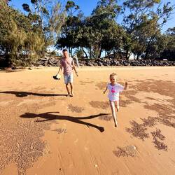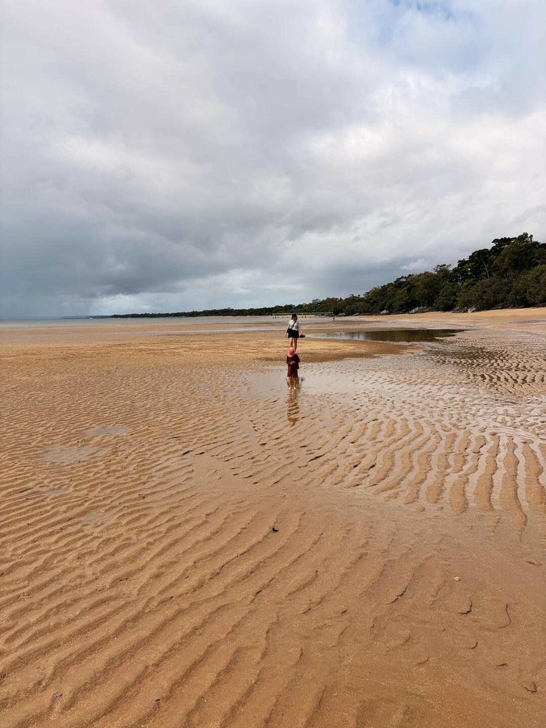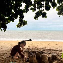 Sind an der Strand in Trinity vor, Sandburh bauen, etwas im Örtchen geschlendert, viel gespielt, gepuzzled, nachmittags zur Happy Hour noch in eine Bar (Papa probiert 2 Bier/ Great Northern& ein Pale Ale), Mama eine Matcha Latte, für Emi ein Eis und mit Mama einen Ananassaft.
