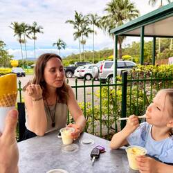 Frosty Mango 🥭 und gönnen uns ein Mangoeis und Frozen Joghurt. Später ein Stopp in Bowen am Horeshoe Bay mit Drohneflug, allerdings sehr windig daher nur kurz.