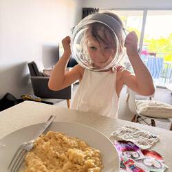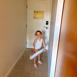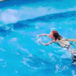 Emilia will wieder in den Pool, tauchen und schwimme, abends ein Vesper und Emi ist um 7 im Bett.