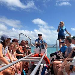 Minütigen Hinfahrt an das Moore Rief zum schwimmenden Plantoon.