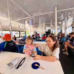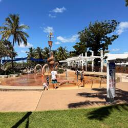 Tolles Aquarium! Danach auf einen Wasserspielplatz, und auf dem Heimweg ein Eis essen und mal kurz in den Pool.