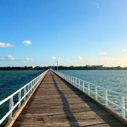 Nachmittags eine ausgedehnten Spaziergang über den Strand hin zum Pier. 900m geht es hinaus und sehr windig dort.