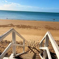 Wir sind heut irgendwie alle Müde und haben keine große Lust auf Ausflüge. Der Wasserpark und das Sanctuary für Kängurus hat leider Montag und Dienstag zu. Also genießen wir hier nur einen entspannten Spaziergang am flachen Strand bei Ebbe überall Krebse…. Für Emilia wieder ein Spielplatz, wir picknicken dort und unser Essen ist gefragt bei den Ibisen und lassen es einfach langsam angehen. Auch mal schön….