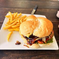 Zur Mittagspause haben wir was gutes gefunden. In Miriam Valle gibt es die BLD Tuckerbox - Mega Burger und anderes leckeres…und gegenüber wieder ein Riesen Spielpatz für Emi.