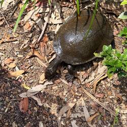 Auch wieder mit dem Tender an Land begegnen uns Schildkröten im Wasser.