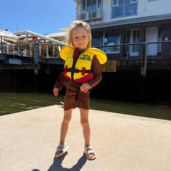 Shute Harbour ist etwas außerhalb, wir werden mit einem Bus dort hingebracht und sollen um 8:15 an der Haltestelle stehen. Kurzer Spaziergang von 15 Minuten.