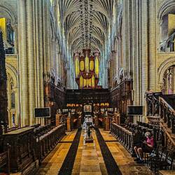 Die Kathedrale von Norwich besaß einst die älteste astronomische Uhr Englands. Die Bossen der Kathedrale sind einer der größten mittelalterlichen Skulpturenschätze der Welt und haben denLæs mere