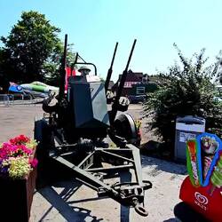 Das habe ich eher durch Zufall entdeckt. Es war ein stinknormaler Parkplatz inklusive ein paar interessanter Panzer & Haubitzen. Ich habe hier eine kurze Snack- und Trinkpause eingelegt und dabei einLæs mere