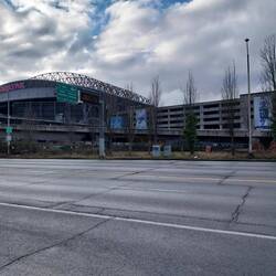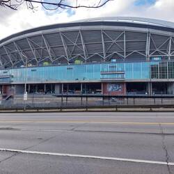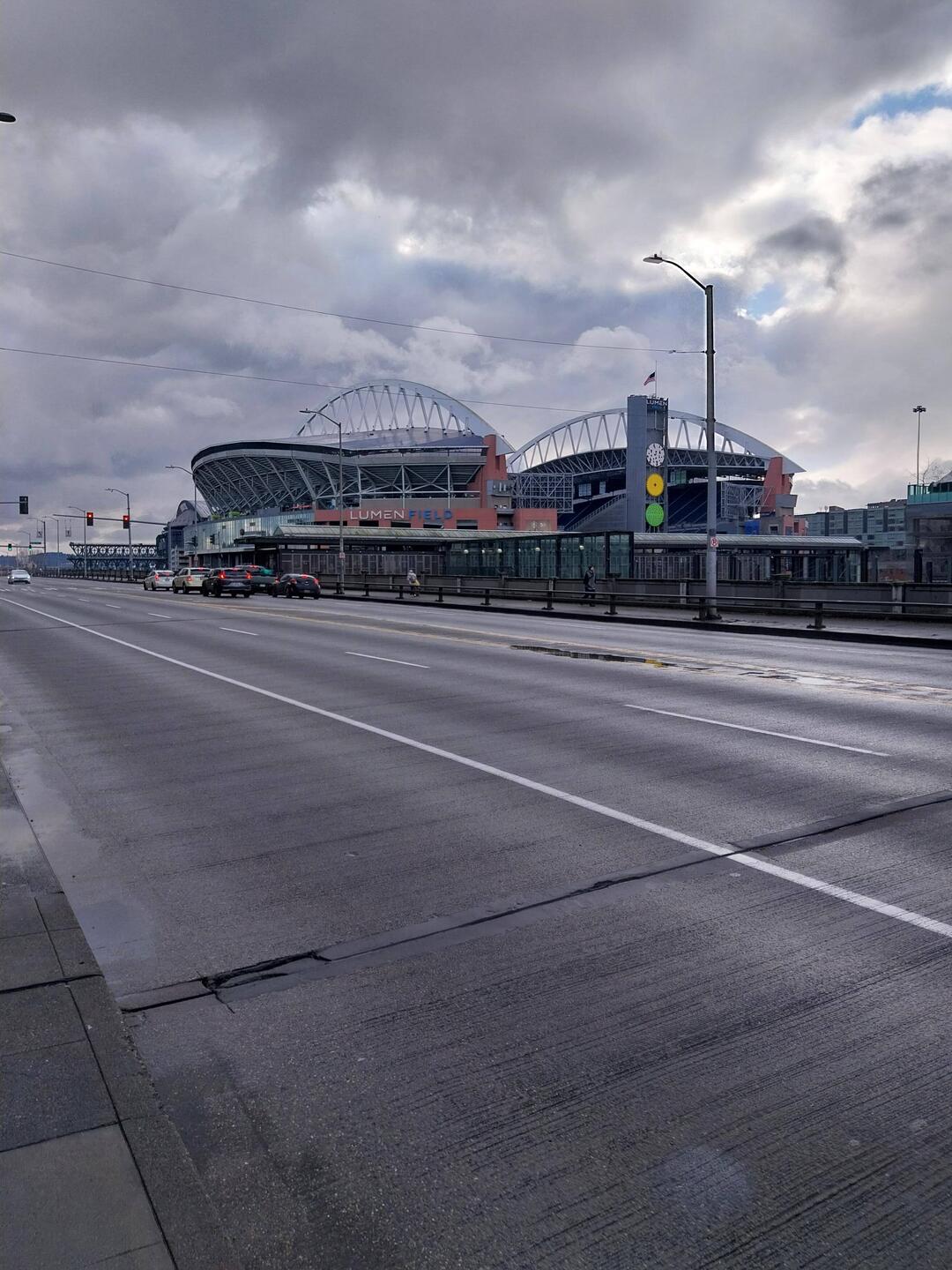 Ich stehe vorm Stadion der Seattle Seahawks, nur Beton, Glas und dieser leise Nachhall von etwas, das gerade nicht passiert.