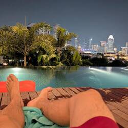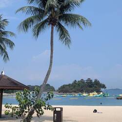 Heute machte ich Inselhopping. Will heißen ich fuhr mit dem Cablecar von der Hauptinsel auf die Insel Sentosa. Wenn in Singapur was gemacht wird, dann will man immer weit vorn mitspielen. So war das auch nicht einfach nur eine Seilbahn, sondern ein ganzes Seilbahnsystem, mit mehreren Aus- und Einstiegen und Umsteigemöglichkeiten. Auch auf der Insel selbst war nichts dem Zufall überlassen. Ich wusste, dass dort Vergnügungsparks waren, aber eigentlich war die gesamte Insel durchchoreografiert. Ich mochte es nicht. Ich war müde, also legte ich mich in den Schatten an den Strand. Schlief ein. Die Sonne wanderte. Die Palme nicht. Mist. Dann wollte ich in eine Strandbar. 50 Dollar für einen Platz auf einer Holzbank ohne Blick. Äh, nein danke. Ich wurde etwas missmutig. Dann fiel mir ein, dass ich die Karte zum Glück die ganze Zeit im Rucksack hatte. Die Rezeptionistin hatte sie mir beim Auschecken gegeben mit dem Hinweis, das Spa des Hotels stehe mir weiterhin heute zur Verfügung. Ja, bin ich denn bekloppt. Nix wie hin. Oh war das gut – eine Dusche gegen den Sand, der Pool zum abkühlen, die Lotion gegen den Sonnenbrand.