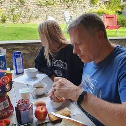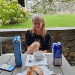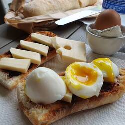 We walked along the water to the bakery... then cooked breakfast! 🍳 🥐 🧀