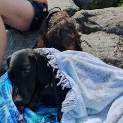 The boys and I went on a long walk this morning at 7 AM... gorgeous morning! 😍 The boys played in the water, at the playground, and met some teckel friends! 🐾❤️🐾