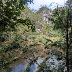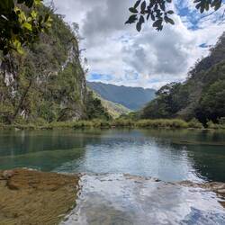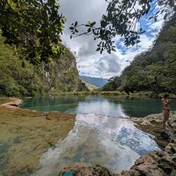 On Tuesday early morning I went to visit the natural sight, and because I was early got both the viewpoint and the pools nearly all to myself. Basically, Semuc Champey consists of a natural limestone _bridge_, and the river formed a path underneath through erosion. The swimming area and calm waters is the "bridge", and the river goes underneath. The pictures don't do it justice.