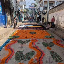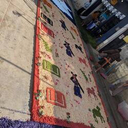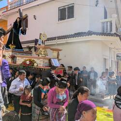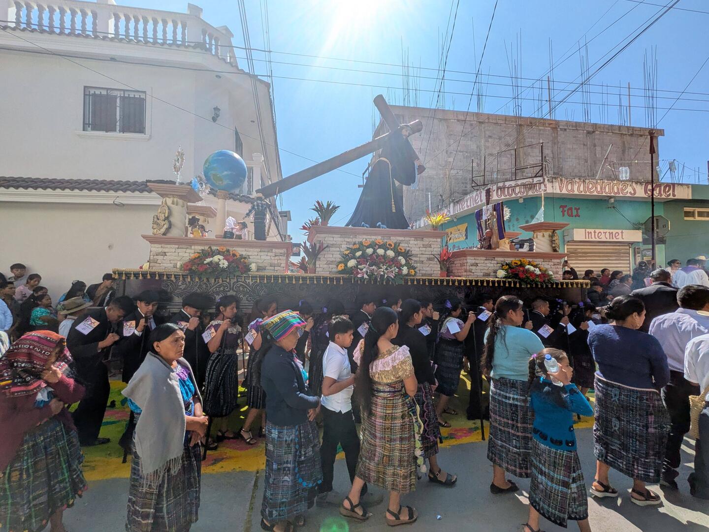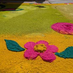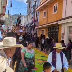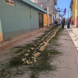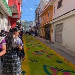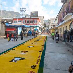 Then, while cycling, I saw the same thing in small villages on the way, and in the smallest of villages they even constructed these carpet artworks on the roads. In the evening in Sacapulas there was another procession, without carpets, and I don't know enough about Christianity to know if this was a different one or not. I had a quick look, and online there are large descriptions of all the different processions they do throughout the week in Antigua, so I am sure I missed out on some important details.