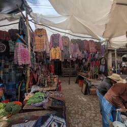 On Saturday, there was already a small market happening with some food stands, but clearly not the main event. What was immediately notable was the number of foreigners (gringos) around. And I must say, although it is nice sometimes to be in towns that noone visits, people are more relaxed in touristic towns: they have seen "our kind" before: foreigners, tourists. (Being not the most social person, I always frown on how the other tourists behave, but I don't get stared at myself.) So, on Sunday, although I was way early with visiting the market and it was still getting set up at 7 (I don't know why I am waking up earlier and earlier...), pretty soon some vendors started to try to sell stuff to me, but not (!) with "gringo! gringo!" at a clothing stand where I'd have to dig through the pile, but just trying to sell something touristy. It was a huge difference.