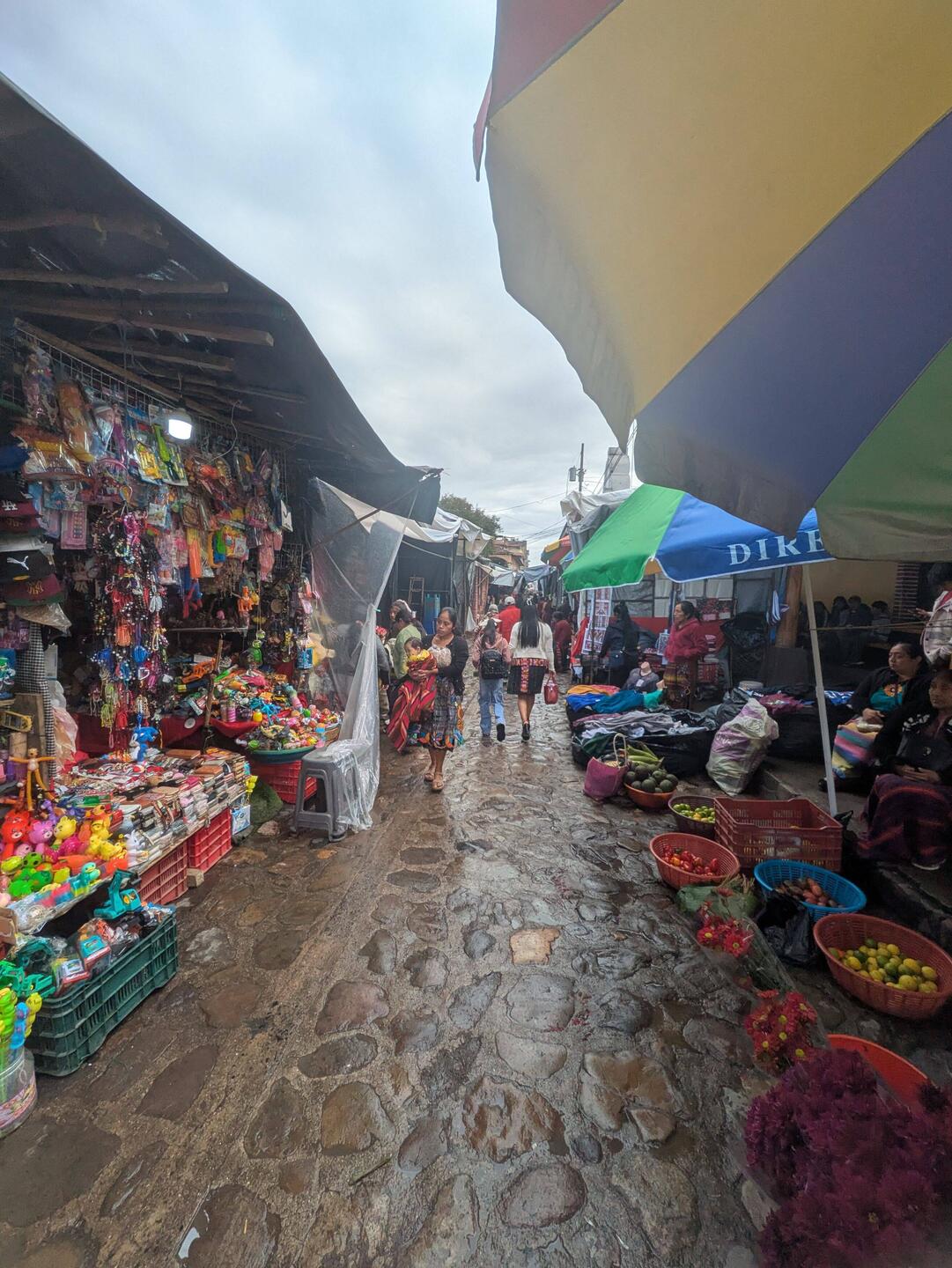 Markets in Mexico and Guatemala are really different: in Mexico Kathi and I found that whatever we needed, be that fruits, vegetables, batteries (except for the very special ones), Isopropyl alcohol, snackies, cheese, or chapulines, the best bet was the market. And the markets seemed to be there daily. Not so in Guatemala: a lot of things you only find in Supermarkets and stores, and the markets seemed to be mostly for veggies, fruits, random clothing (really all kinds of cheap clothing dumped on a pile, mostly), sometimes the fabric for Maya clothing, and usually some food stands—my reason for always going there. Batteries, plastic containers, and all that random stuff I haven't seen on these markets. I also found Guatemalan markets a lot smaller than markets in Mexico.