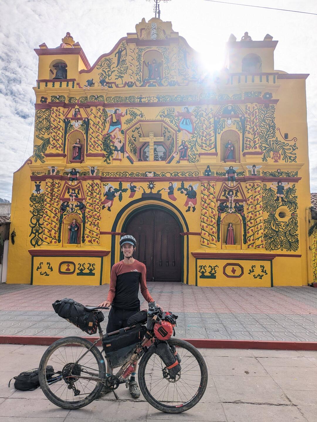 Since the puking really messed with my stamina we only did a small biketour to Chamula. The one and only attraction there is the church, where they hold ceremonies including lots of shots of „pox“—the local high-percentage alcohol used for burping, sometimes alternating it with cola to save money— super strong incense, very off-tune music, and sometimes even chicken sacrifices. Luckily, on the day we went there were only families lighting candles, praying, music; and of course more fireworks. (Jacco thought it resembled a couple of drunks trying to have a party more than a religious ceremony.) The plan was to go to Zinacantan after that to buy some souvenirs at the market, but the odds (Komoot, which sent us on a dead end forest track) were against that.
