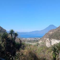 I decided to spend three nights at the lake, to also try a touristy volcano hike up to 3000 meters, the Volcán San Pedro. Got up at 6am, hoping for the best views at the top and beat the clouds, but I kind of feel like I got trapped in a tourist trap: just clouds at the top, and the best view of the lake was close to the bottom. They did a lot of trail building though (would have been cool with a Mountainbike), so I did something for the local community; you pay 100 quetzal (11 euros) just to be allowed to do the hike. And my legs hate me— glad I can get on the bike again tomorrow. Don't get me wrong, I love the lake and the area, and am enjoying good coffee and food (just not good craft beer, sorry, it was piss water with cacao added). And now only two more days of cycling though, before Antigua Guatemala.Leggi altro