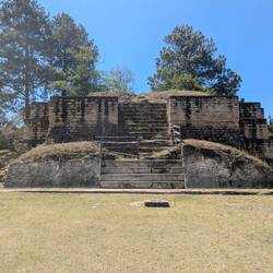 Iximché is a site very unlike the ones in the jungle, or Mayan lowlands, being mostly flat. However, it is remarkably big with six plazas, all surrounded by their own pyramidial structures, and having two big ball courts; basically it was laid out as two separate administrative cities combined. None of the remains are as well kept as Tikal or Yaxchilán though: the spanish burnt everything to the ground. You see, the people of Iximché initially sided with the Spanish against the K’iche people, before trying to revolt and being beaten down and burned by the Spanish. The k'iche were the people of the towns I mentioned in an earlier footprint.