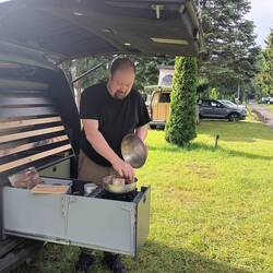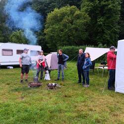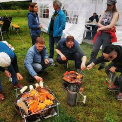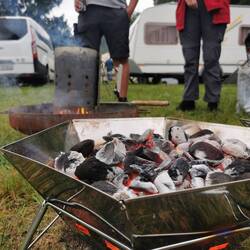 Drei fehlen noch, es wird angegrillt. Und es regnet nicht mehr😃