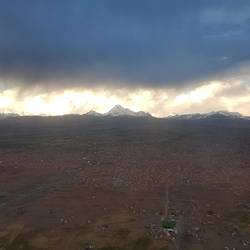 La Paz is the seat of government in Bolivia. The city sits in a crater of clay and sandstone surrounded by the tall mountain peaks of the Altiplano and the majestic Illimani towering over it.