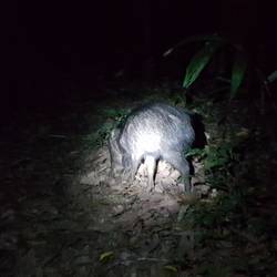 Suddenly while walking, Miguel turned off his torch and instructed us to so the same. We stood there in complete darkness and tried to hear through the jungle sounds for anything unusual. Sure enough,Meer informatie