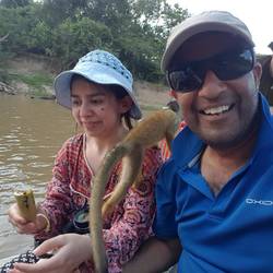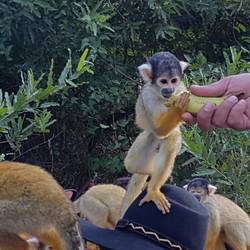 A bit further, we saw some squirrel monkeys. They came towards the boat when we stopped. They didn't seem to be afraid of us and jumped on the boat to find food.