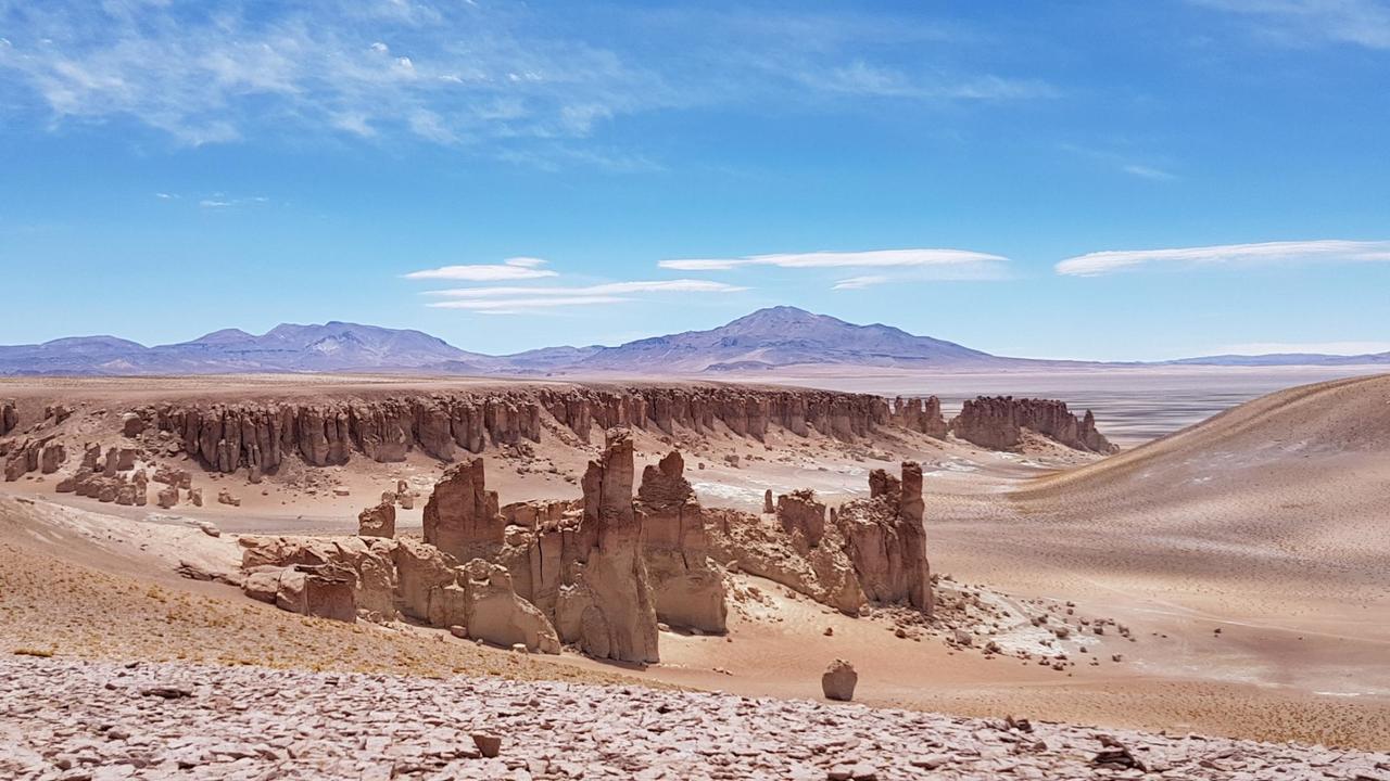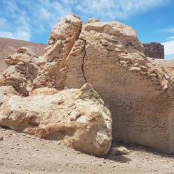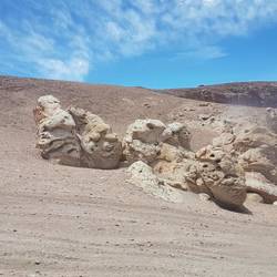 From the viewpoint, we drove down into the valley along a dirt road. There were strange stome formations on the way.