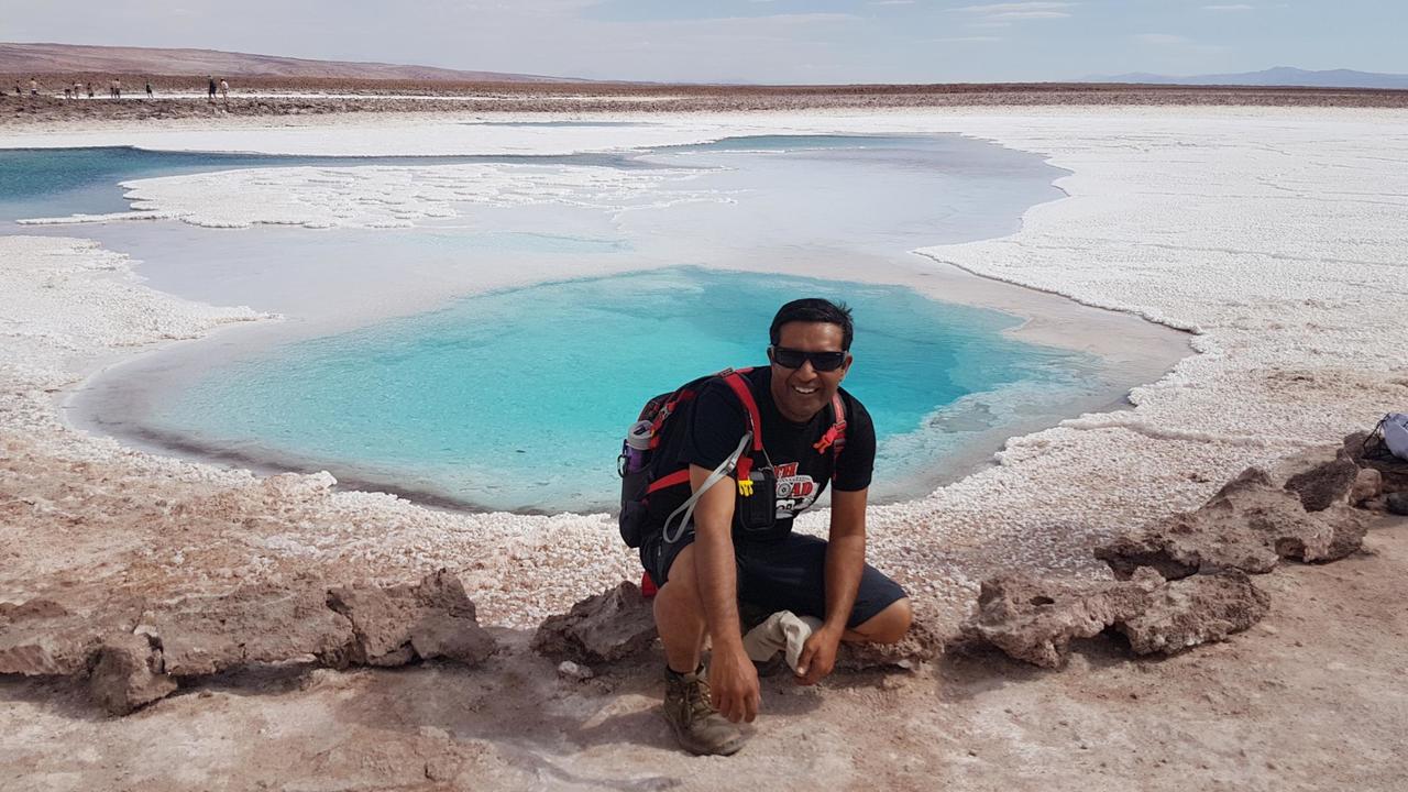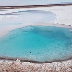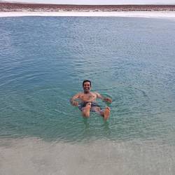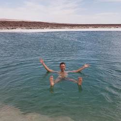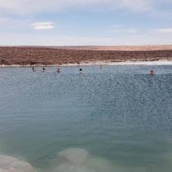 The last of the Baltinache lakes was much bigger than the other ones before. We decided to go in here. The water density is very high due to the salt in the lake. It was not possible to swim. Most ofLæs mere