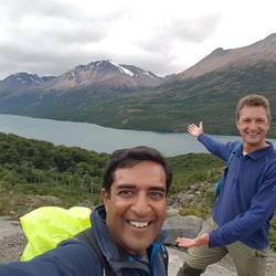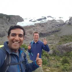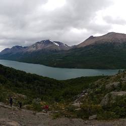 Within 25 min of starting, we reached the 1st of the glacier viewpoint. We could see the tongue of the glacier hanging above nearby. On the other side, was a beautiful sight of the Lago del Desierto.