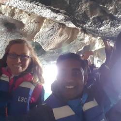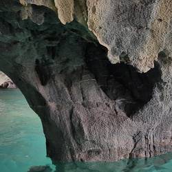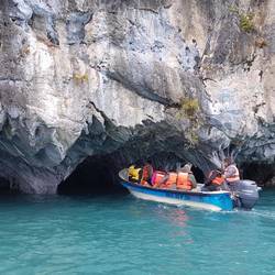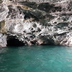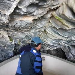 Our boat captain took us into one of the caves that was big enough to fit the boat. It was an amazing view inside. The marble had so many different colors and the greenish blue of the lake was trulyBaca lagi