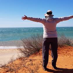 Wir sind mitten im Nirgendwo, abseits der Stadt Carnarvon, und werden auf der Quobba Station auf das Herzlichste empfangen. Wir dürfen hier irgendwo campieren. Es ist wundervoll hier. Uns gefällt esLeggi altro