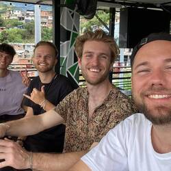 Aber die Nacht ist noch nicht vorbei. Am Vortag haben wir nämlich den Kontakt einer herzlichen Klamotten-Verkäuferin ergattert, welche uns per Instagram einen Tipp für eine lokale Strassenparty gibt. Wir verlassen also El Poblado und fahren zur Adresse, die uns Lisa geschickt hat. Dort angekommen können wir es kaum glauben, dass dort tatsächlich laute Musik läuft und es ein paar Hundert Einheimische in unserem Alter offenbar doch noch aus dem Haus geschafft haben und dort in unterschiedlichesten Outfits auf der offenen Strasse tanzen, während billiger Auguardiente von einer alten Frau aus einem Kiosk verkauft wird - diese Party ist schon um einiges mehr nach unserem Geschmack (vor allem für die Reggaeton-Liebhabenden unserer Gruppe)! Damit aber auch alle auf ihre Kosten kommen, fahren wir nach einer Weile gemeinsam mit Lisa und ein paar Friends von ihr weiter zu einem Techno Club, welcher sich im Stadtzentrum befindet (dort, wo wir auf keinen Fall hinfahren sollten, und schon gar nicht nachts, wie uns von verschiedener Seite gesagt wurde). Der Club befindet sich in einem alten Salsa Lokal und wir werden vom Türsteher hineingelassen, indem er ein rostiges Metall-Tor von Hand hochzieht. Innen ist nicht mehr zu erkennen, ob wir uns in Medellín oder Berlin befinden und wir tanzen bis frühmorgens zu den stampfenden Bässen (für genauere Auskünfte bitte an eine Person wenden, die sich besser mit Techno auskennt und ganz generell eine weniger vernebelte Erinnerung an die Nacht hat). Alles in allem war es ein denkwürdiges, einzigartiges, abwechslungsreiches, unvergessliches Silvester 2024/25!もっと詳しく