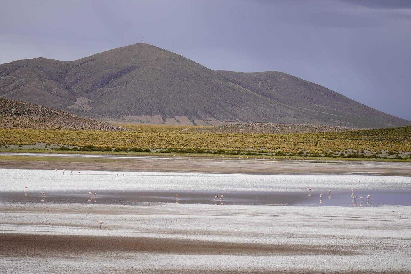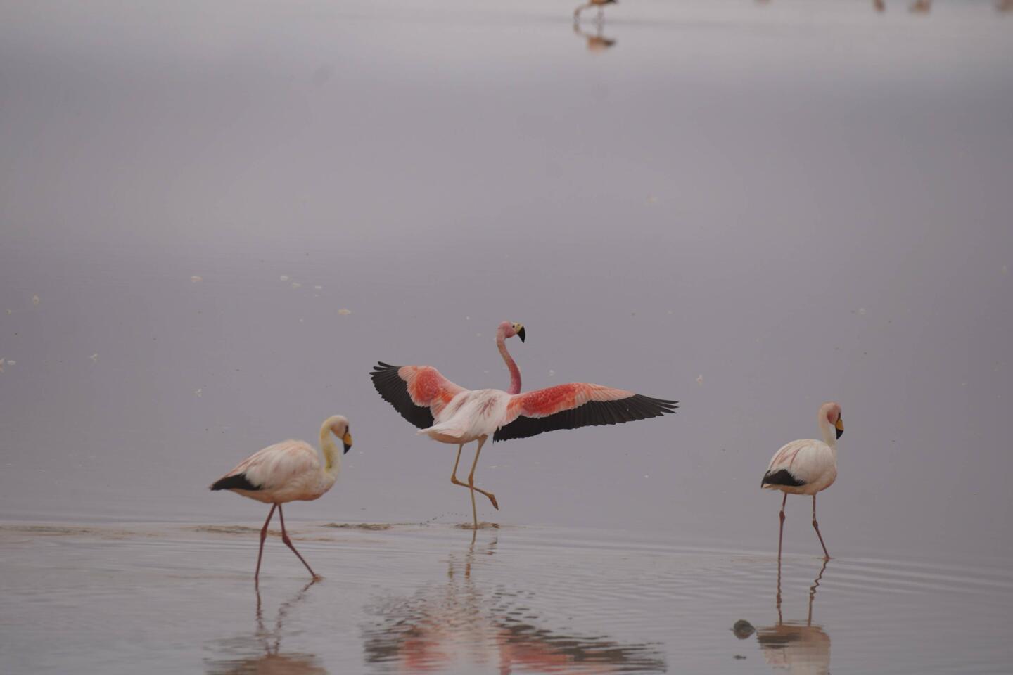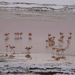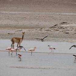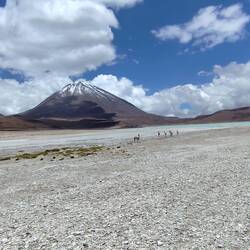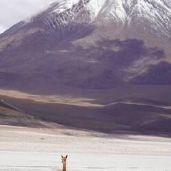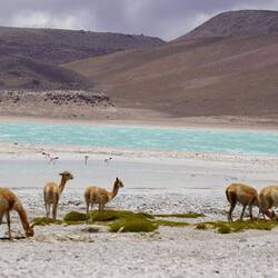 Am nächsten Tag ging es weiter. Wir sind an den ersten Lagunen vorbeigefahren und konnten Flamingos bestaunen. Unterwegs trifft man immer wieder grasende Lamas und Alpakas an.