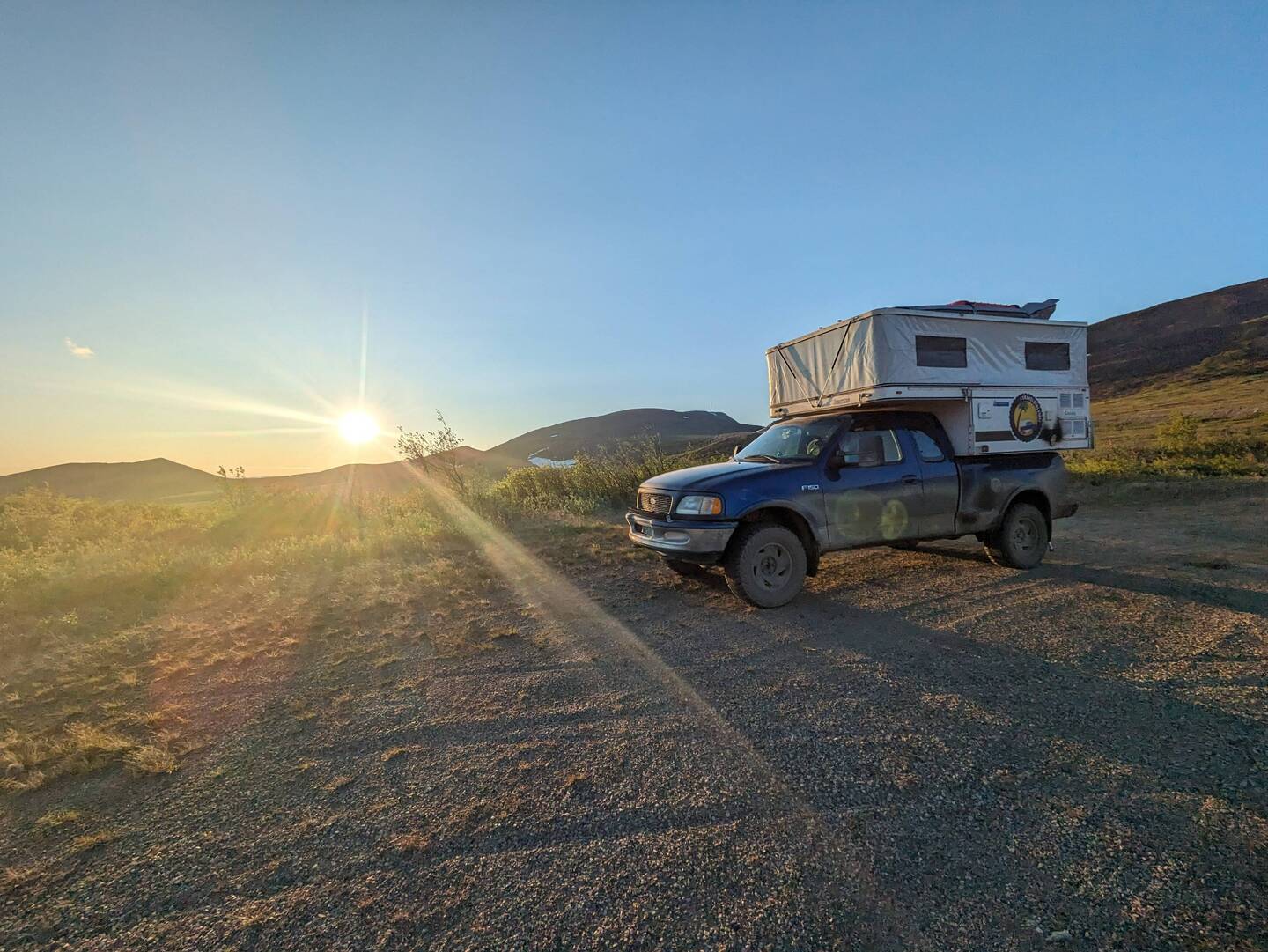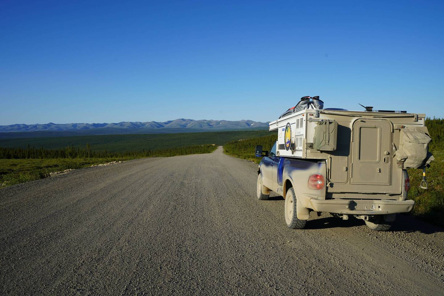 Der Dempster ist wie schon erwähnt die wohl längste Sackgasse der Welt. 800 Km Schotter hin sind für viele Fahrzeuge und vor allem die Reifen schon ziemlich anspruchsvoll, jedoch hat man oben angekommen erst die hälfte erreicht. So kommt es, dass wir heute Morgen als erstes einen riesigen Wohnwagen antrafen der eine Reifenpanne hatte. Ja man benötigt nicht zwingend einen 4x4 um den Dempster zu fahren. Dieser Herr hat sogar bewiesen, dass man es mit einem 30 Fuss Wohnwagen schaffen kann! Unsere Hilfe zum Reifenwechseln schlug er ab. Er wollte lieber mit dem Platten ins nächste Dorf fahren um es dort wechseln zu lassen, damit er nicht Hand anlegen muss :).