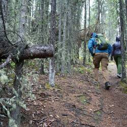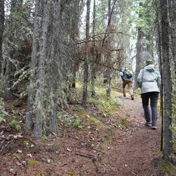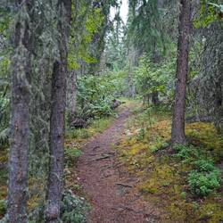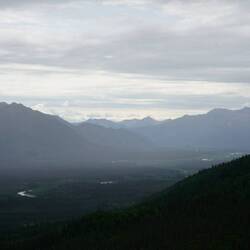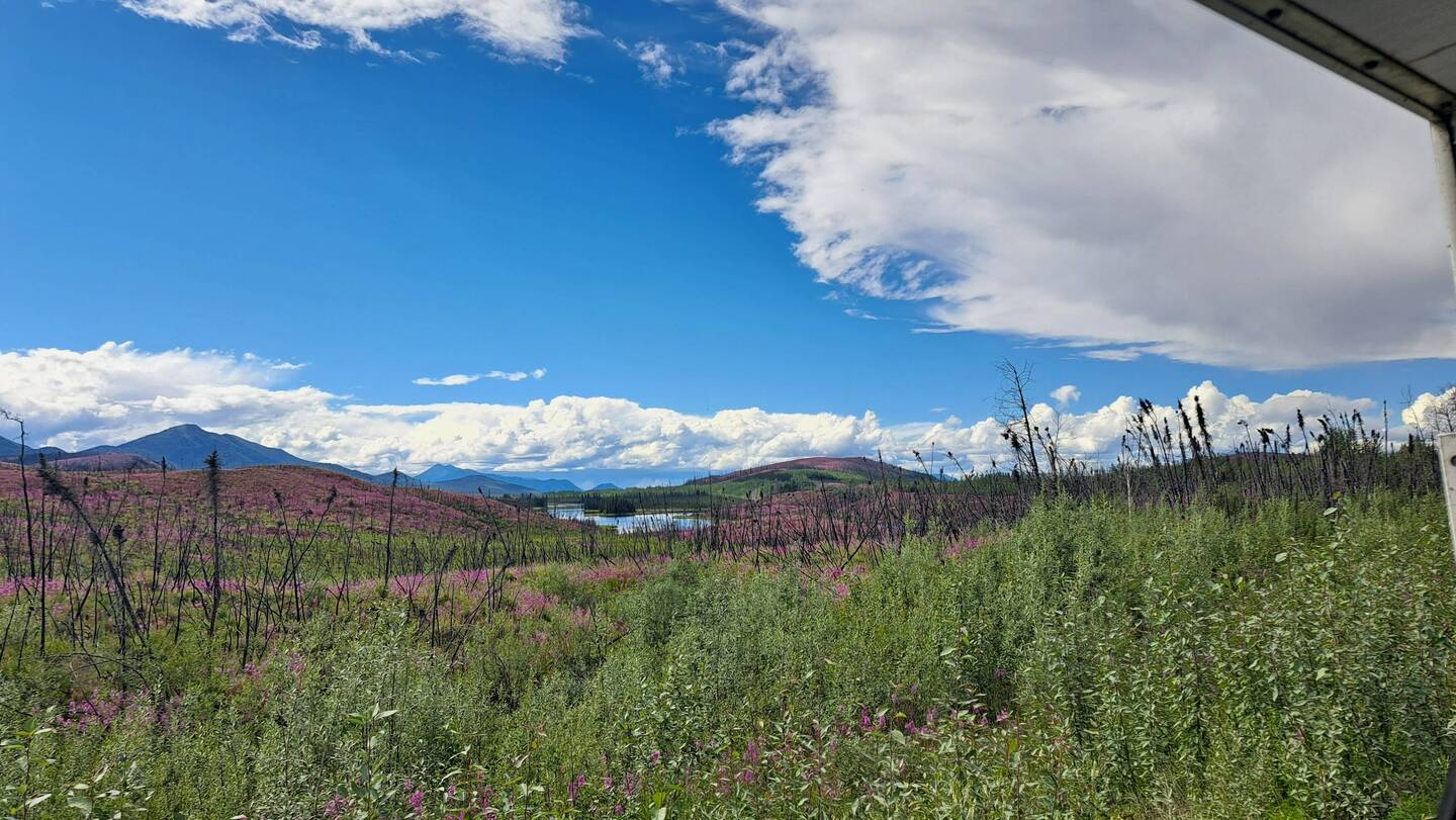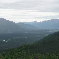 In Delta Junction konnten wir endlich wieder einige Frischwaren kaufen. Ich wollte wieder mal Burger machen und Grillen und zum Glück waren Marion und Dave für Burger zu begeistern, da wir nur riesige Mengen Hackfleisch kaufen konnten. Dave schlug vor, dass wir vor der Burgerparty noch einen Aussichtspunkt besteigen. Die beiden waren ziemlich trainiert von ihrer bereits längeren Reise und stiegen den Berg deutlich schneller als wir hoch ;p Wir sahen auf dem Weg zwar keine Tiere, jedoch wurden wir mit ein wenig Aussicht auf dem Aussichtspunkt belohnt.