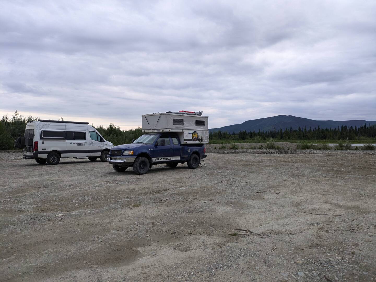 Gemeinsam mit Dave, Marion und ihrem Sprinten fuhren wir also über die Schotterstrasse und campierten in einigem Abstand der US Grenze. Heute Abend hiess es für uns die Kühlschränke zu leeren, da man Frischprodukte nicht über die Grenze mitnehmen darf...
