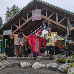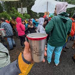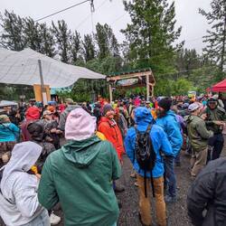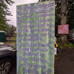 Nachdem wir die tolle Gezeitenwelle gesehen haben machten wir uns im strömenden Regen auf dem Weg nach Girdwood. Wir wollten eigentlich vor dem Wind am Meeresarm flüchten und uns in Ruhe wieder mal ausschlafen. Als wir in Girdwood ankamen bemerkten wir die unglaubliche Menge an Autos und Menschen und hörten Musik aus dem Wald. Schlussendlich bemerkten wir, dass es sich dabei um das bekannte Festival von Gridwood "Forest Fair" handelt welches Jährlich um die Festlichkeiten des Nationalfeiertags stattfindet. Wir ergatterten also einen beliebten Stellplatz am Strassenrand und zogen los in den Wald. Am Wald angekommen bemerkten wir, dass der Wald einer Schlammschlacht glich. Wir kehrten nochmals um und rüsteten uns mit hohen Wanderschuhen und Regenkleidung. Und dann ging es dann endlich ab in den Wald.