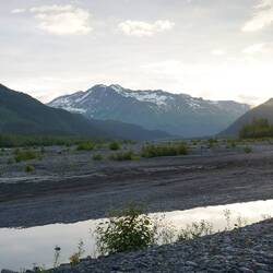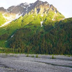 Mit vielen anderen Campern finden wir einen schönen Stellplatz am Fluss unterhalb des Exit Gletschers. Am Abend gibt es dann den guten Lachs und das Wetter bessert sich stetig.Læs mere