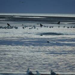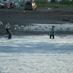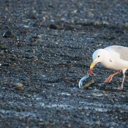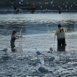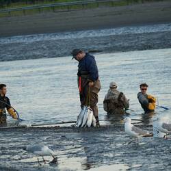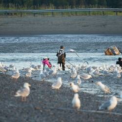 Neben den Fischern tummelten sich hier tausende Möven, Seerobben und Weisskopfseeadler welche ebenfalls am Fischen teilnahmen.Læs mere